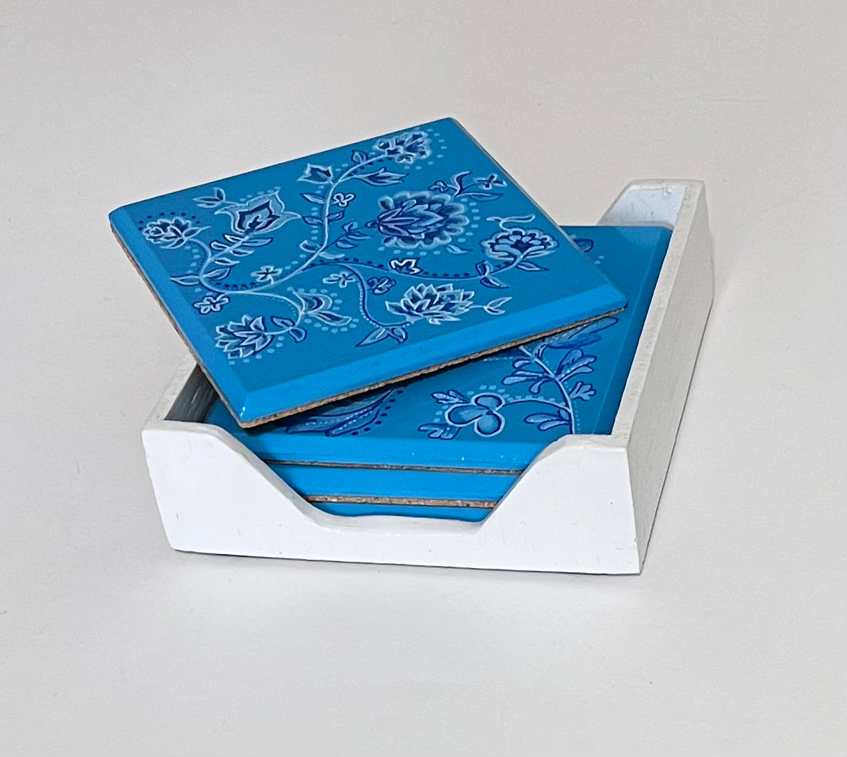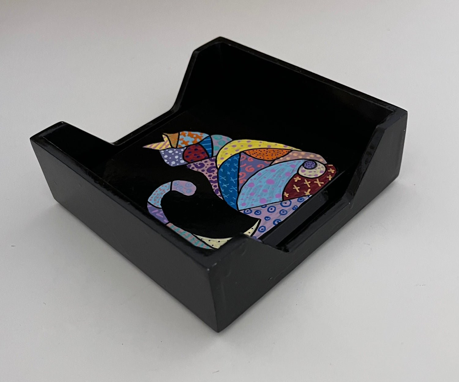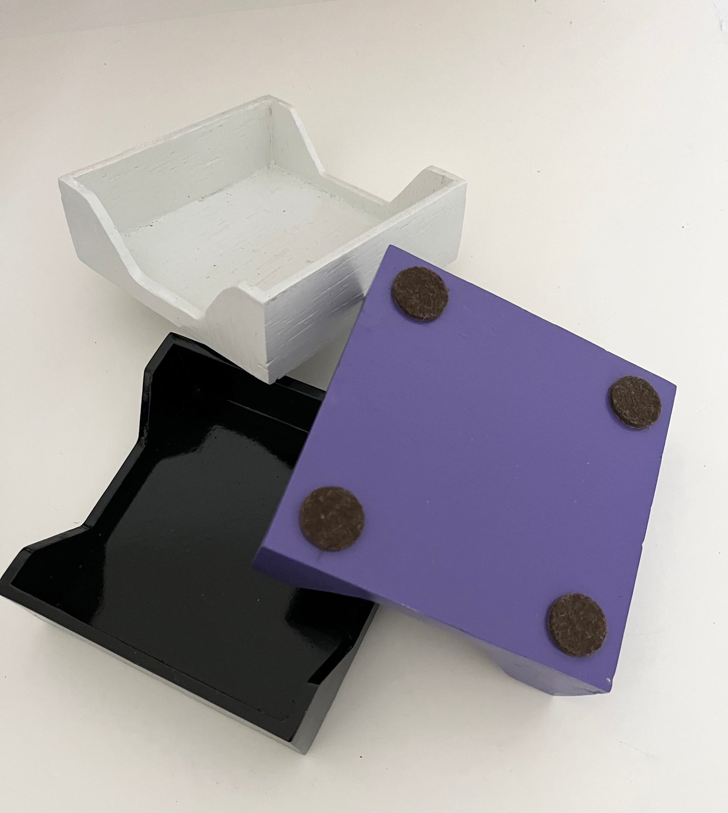 Coaster boxes now available as an "add-on" purchase with 4 or more painted coasters. Painted in acrylic with a protective glossy finish. Each box has felt pads on the bottom to protect your surfaces. Colors vary. Pair this with any group of coasters for a sophisticated look and a beautiful gift set!