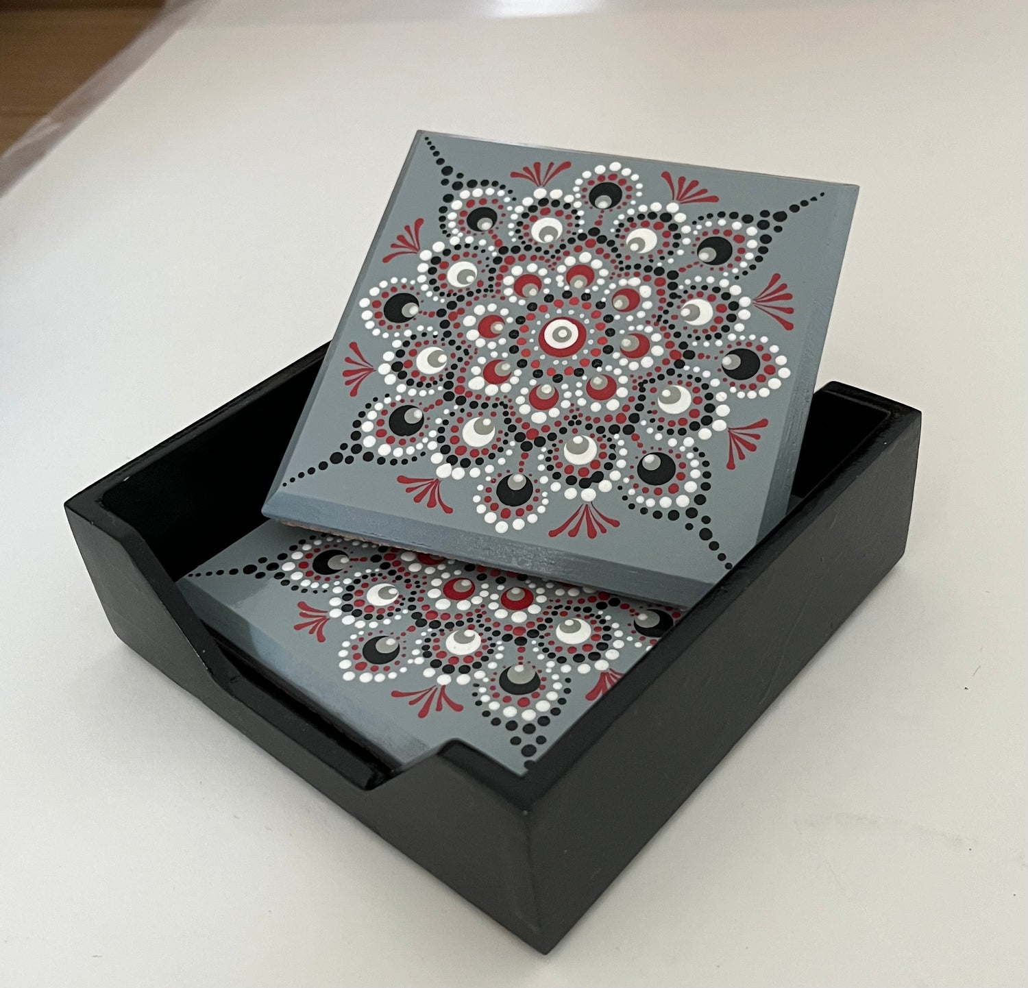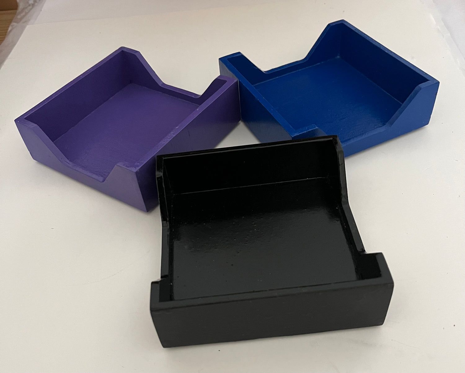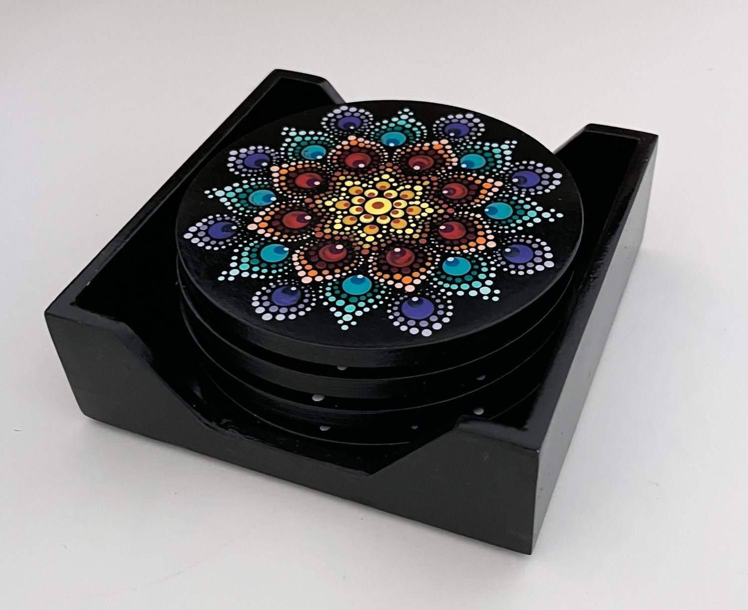 Coaster boxes now available as an "add-on" purchase with 4 or more painted coasters. Painted in acrylic with a protective glossy finish. Each box has felt pads on the bottom to protect your surfaces. Colors vary. Pair this with any group of coasters for a sophisticated look and a beautiful gift set!