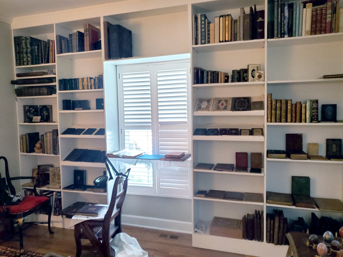 This is a commissioned custom wall-to-wall, floor-to-ceiling bookcase.