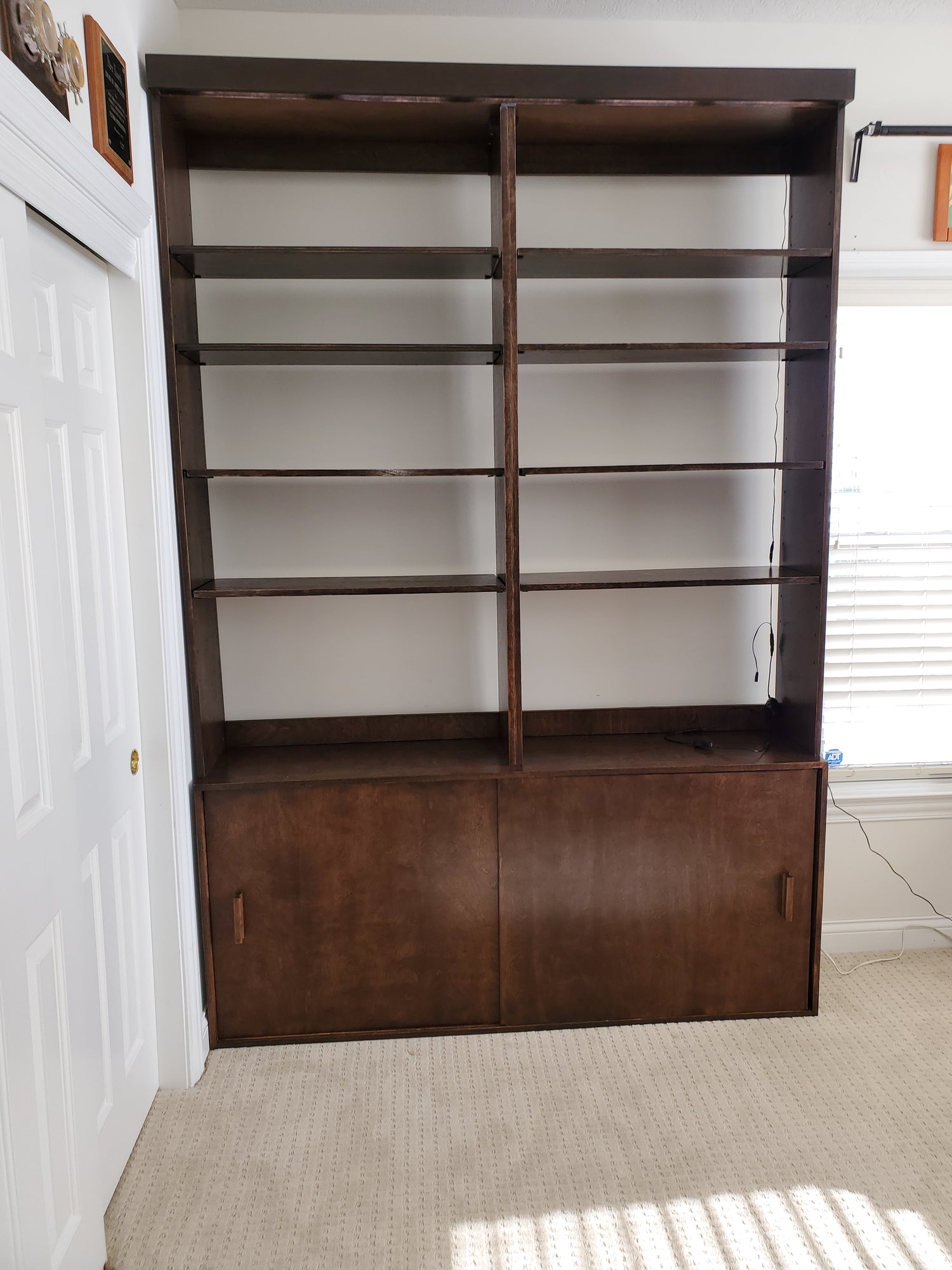 I was commissioned to build a large cabinet/bookshelf, and here is the result!