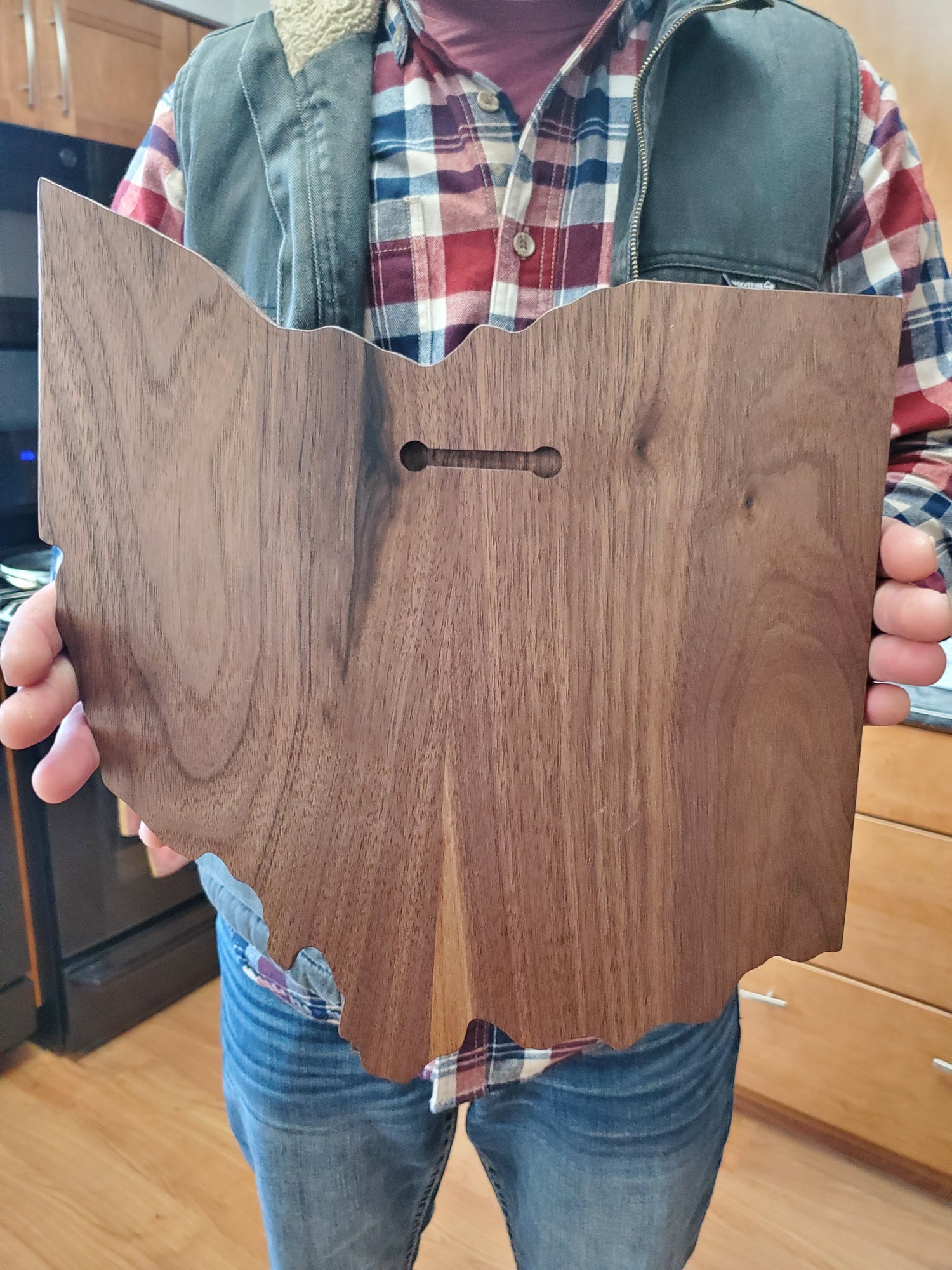 We were looking for a unique and meaningful gift for the owner of the company we work for and saw some of the really cool things Greg was working on at the time and he helped us come up with an Ohio shaped board with the company name on it. There were several options for font and finish. It came out BEAUTIFULLY! As soon as we saw it, we knew it was going to blow our boss away! It did not disappoint! I can’t express how appreciative we are for this one of a kind gift! Greg is so talented! The bookshelf that’s pictured is our next ask! It’ll be perfect for our boys’ bedroom! Thank you so so much, Greg!