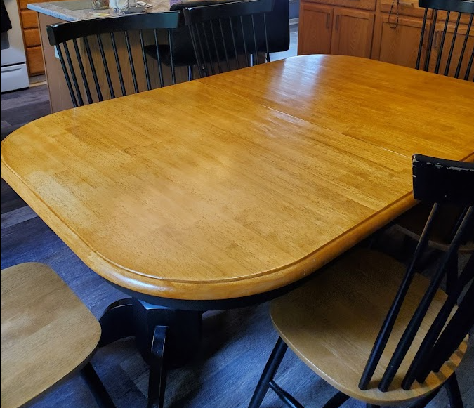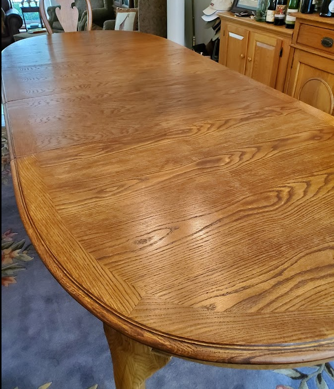 In the case of the pictures here, I finished only the top of the tables because the base and legs were in good shape and didn't need to be redone. No point in charging for unnecessary work.