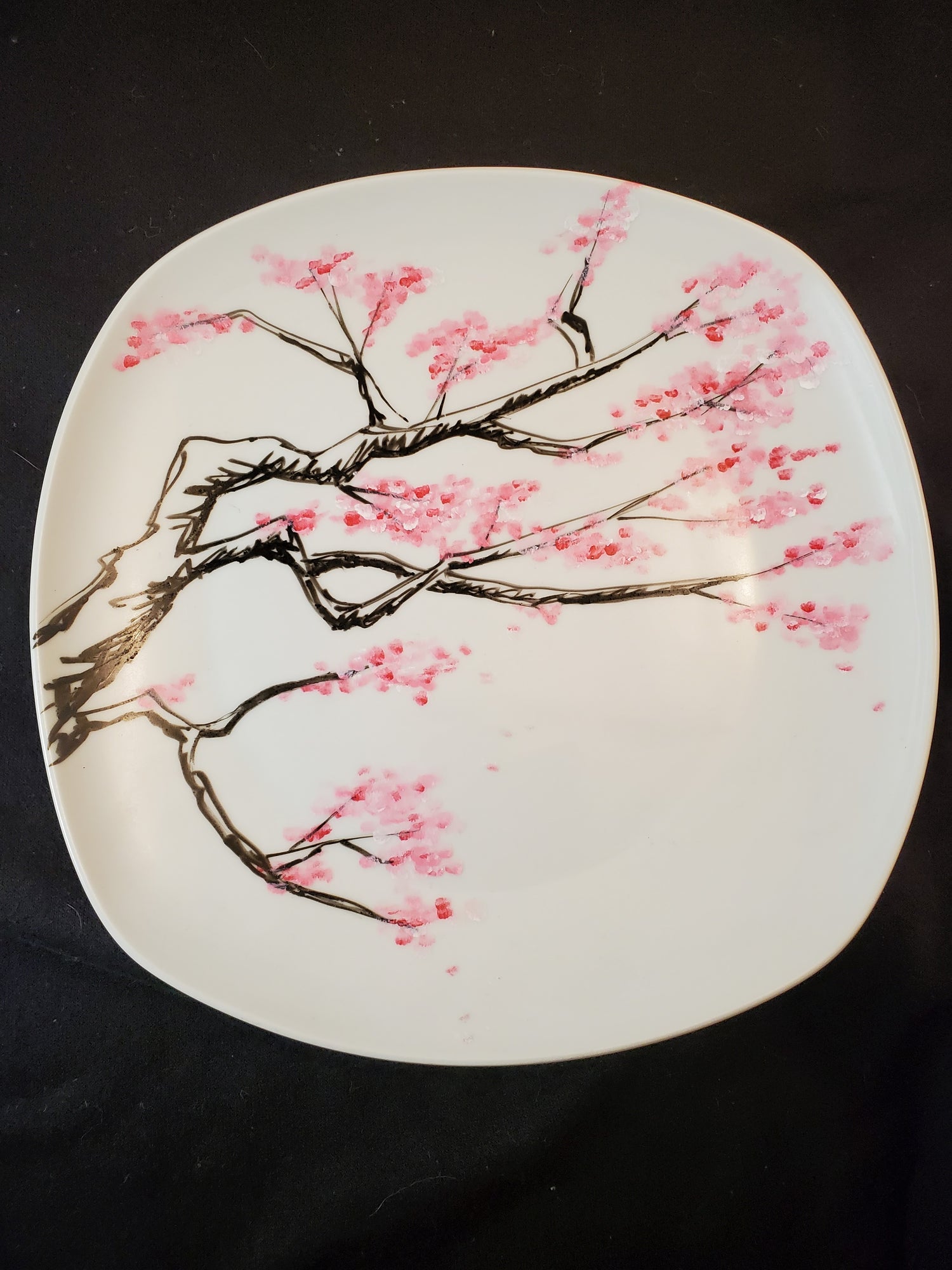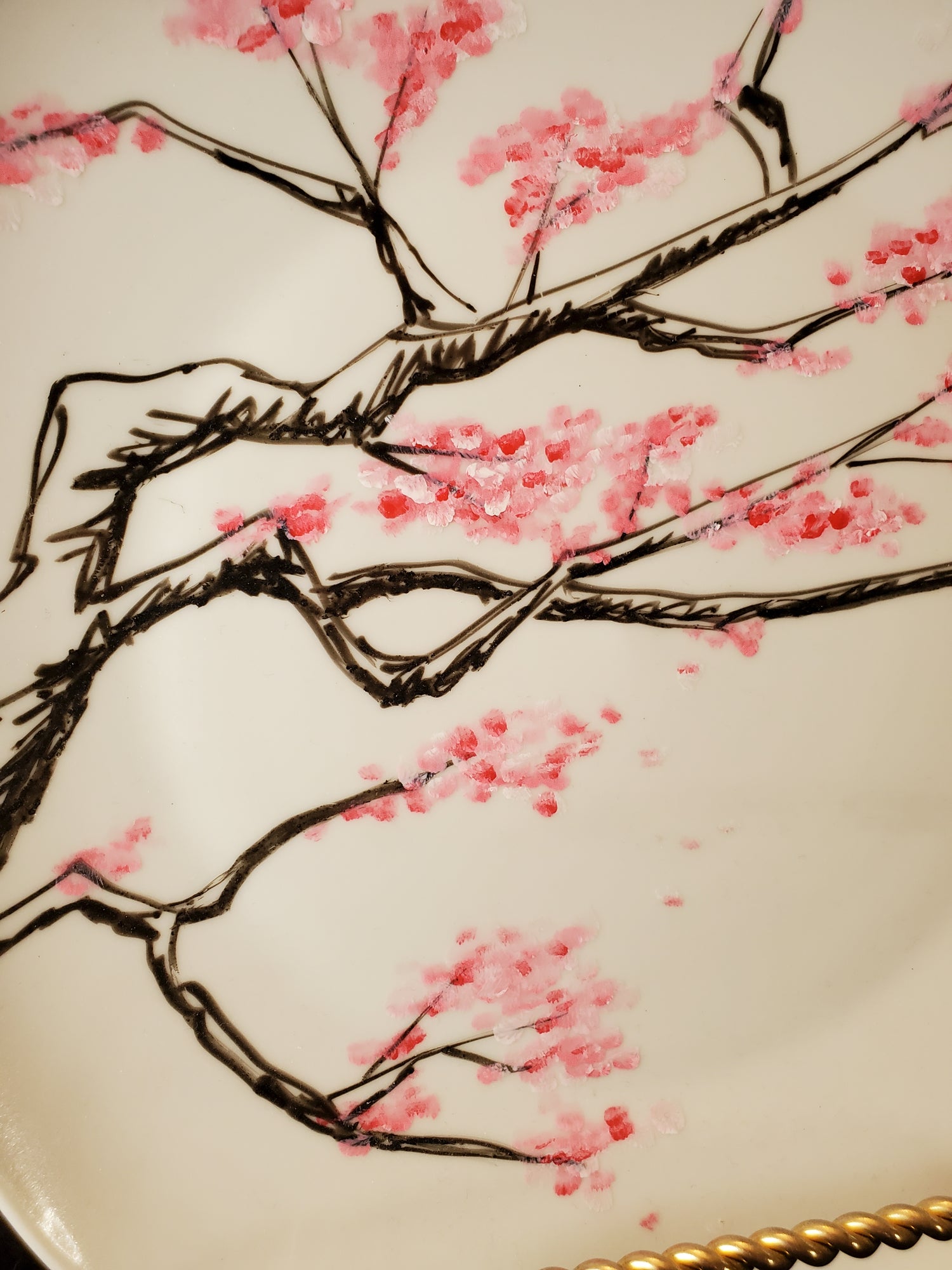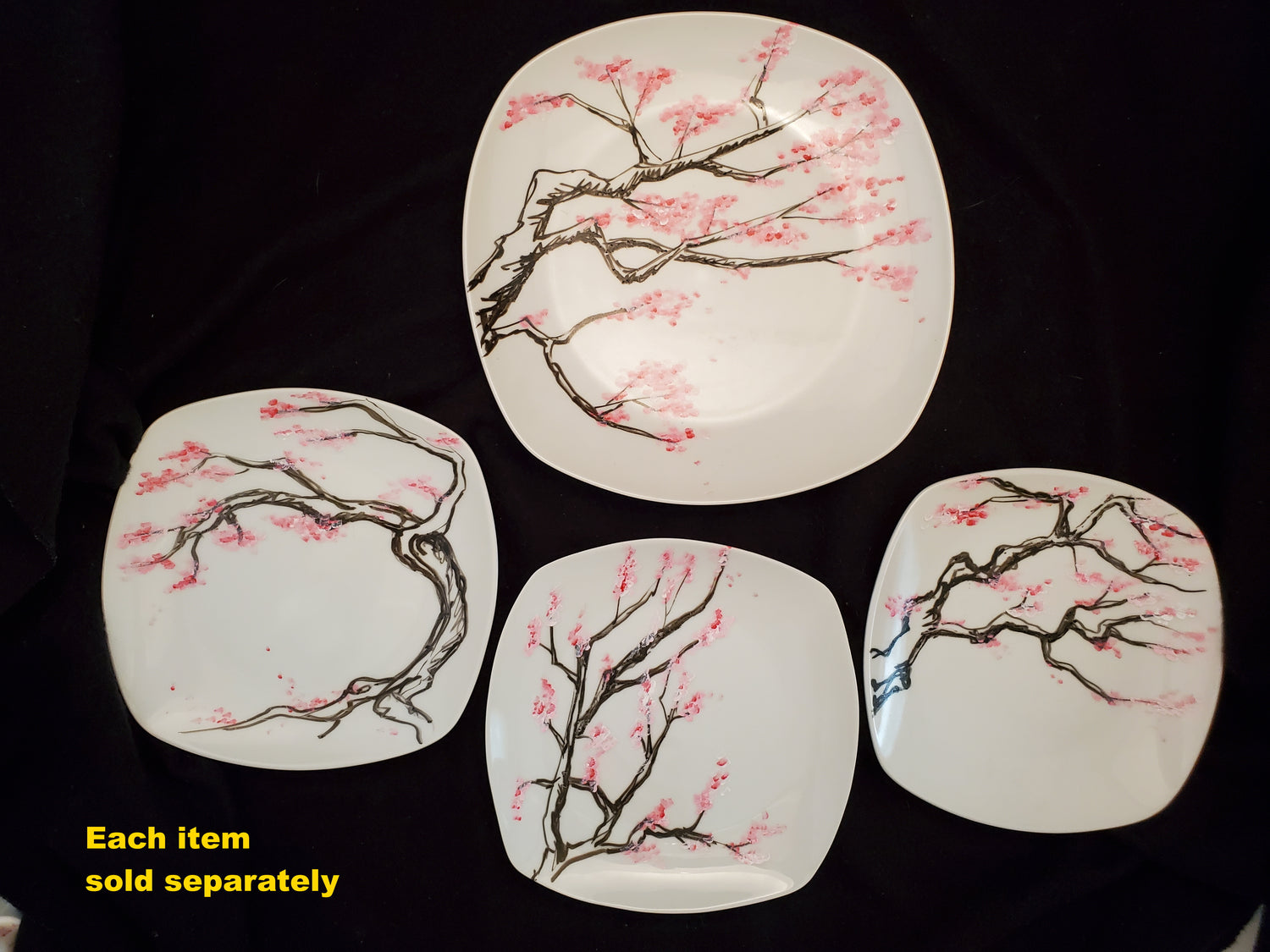 Cherry blossoms are a symbolic flower of the spring and renewal, and the fleeting nature of life. This large, 10 inch ceramic, hand-painted plate is an Asian-inspired decorative plate sure to add peace and joy to your home. Pair this with one or more of the smaller cherry blossom plates for a delightful serving set.
