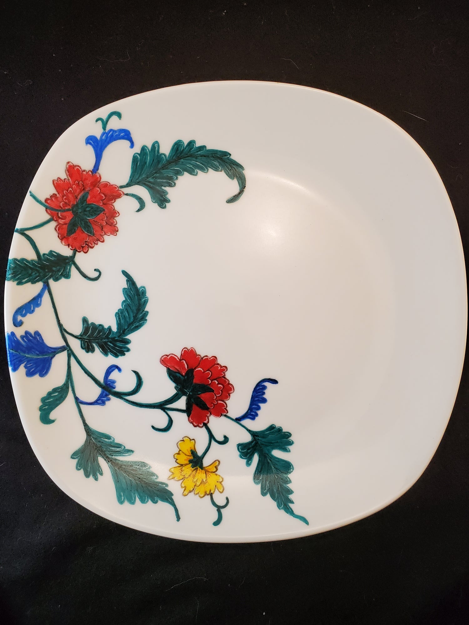 Microwave safe. Paints are non-toxic and lead free. Hand painted items should be treated with care. They have been heat cured, but hand washing is strongly encouraged.
