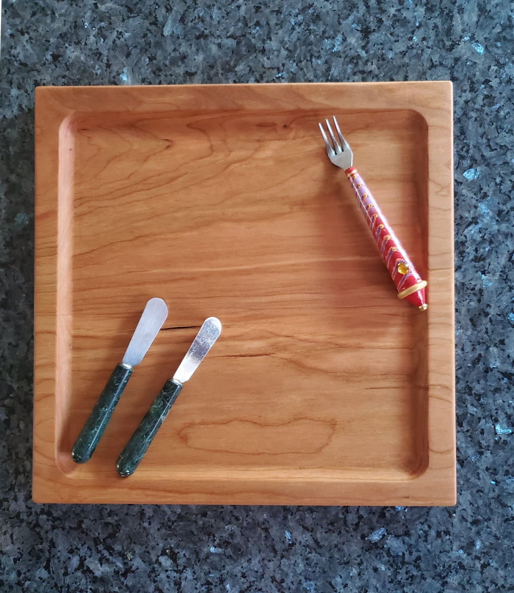This Simple Square Charcuterie is the perfect pick for your next small gathering! Beautifully crafted from cherry wood with a food-safe finish, the lightweight charcuterie is sure to be the highlight of the night with its chic square shape and stunning grain pattern. Bon appetite!