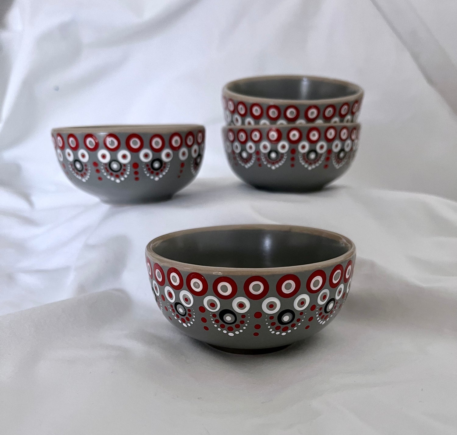 Cheer for our OSU Buckeyes with these mini-Scarlet & Grey Bowls! Dot patterns adorn these gems, perfect for dips, nuts or candies. A perfect addition for a dorm room or for your next Game Day! Buy one or buy them all!