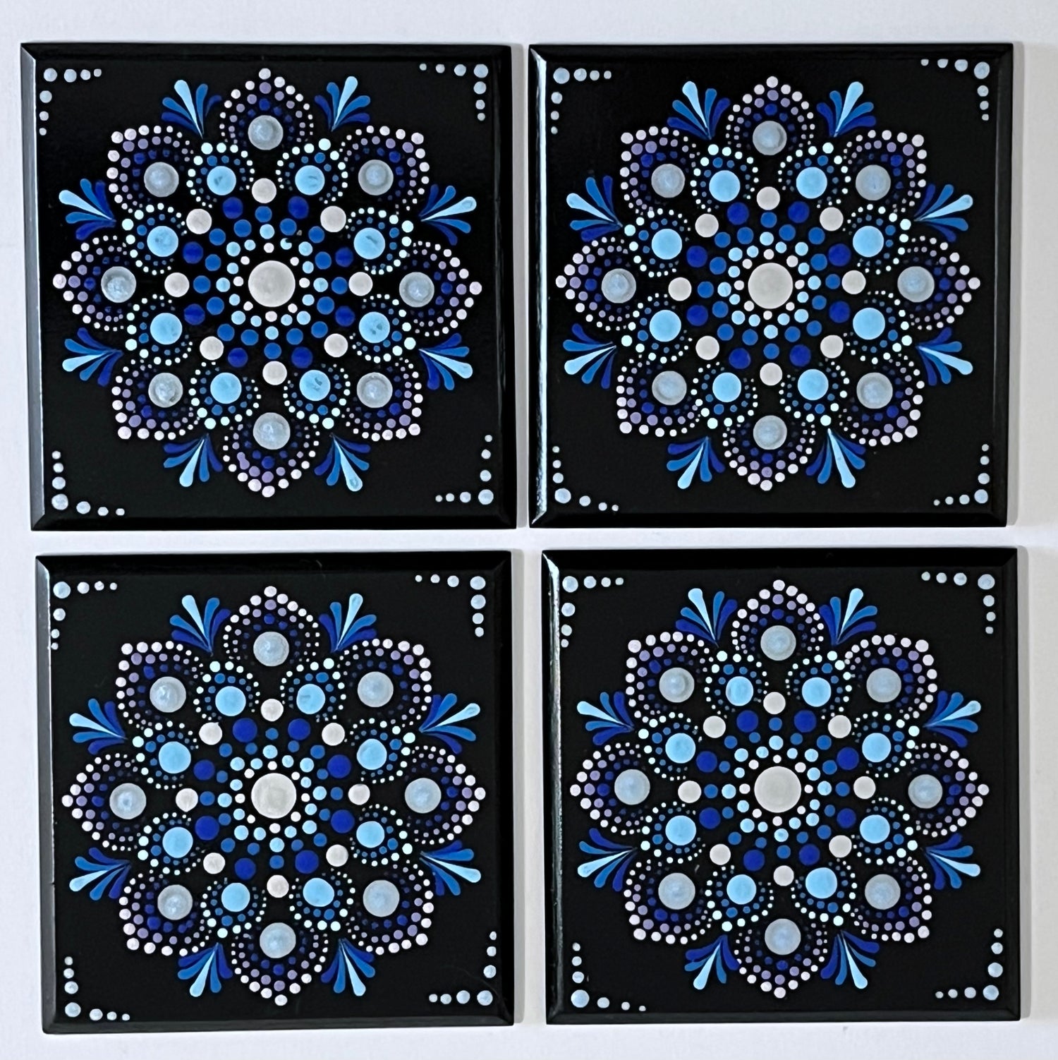 Square Mandala Coasters - Black with Metallic Blue Pattern (set of 4)