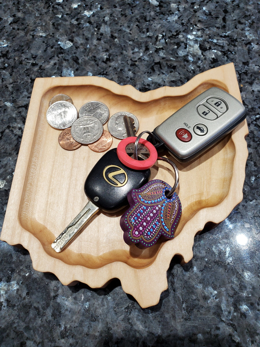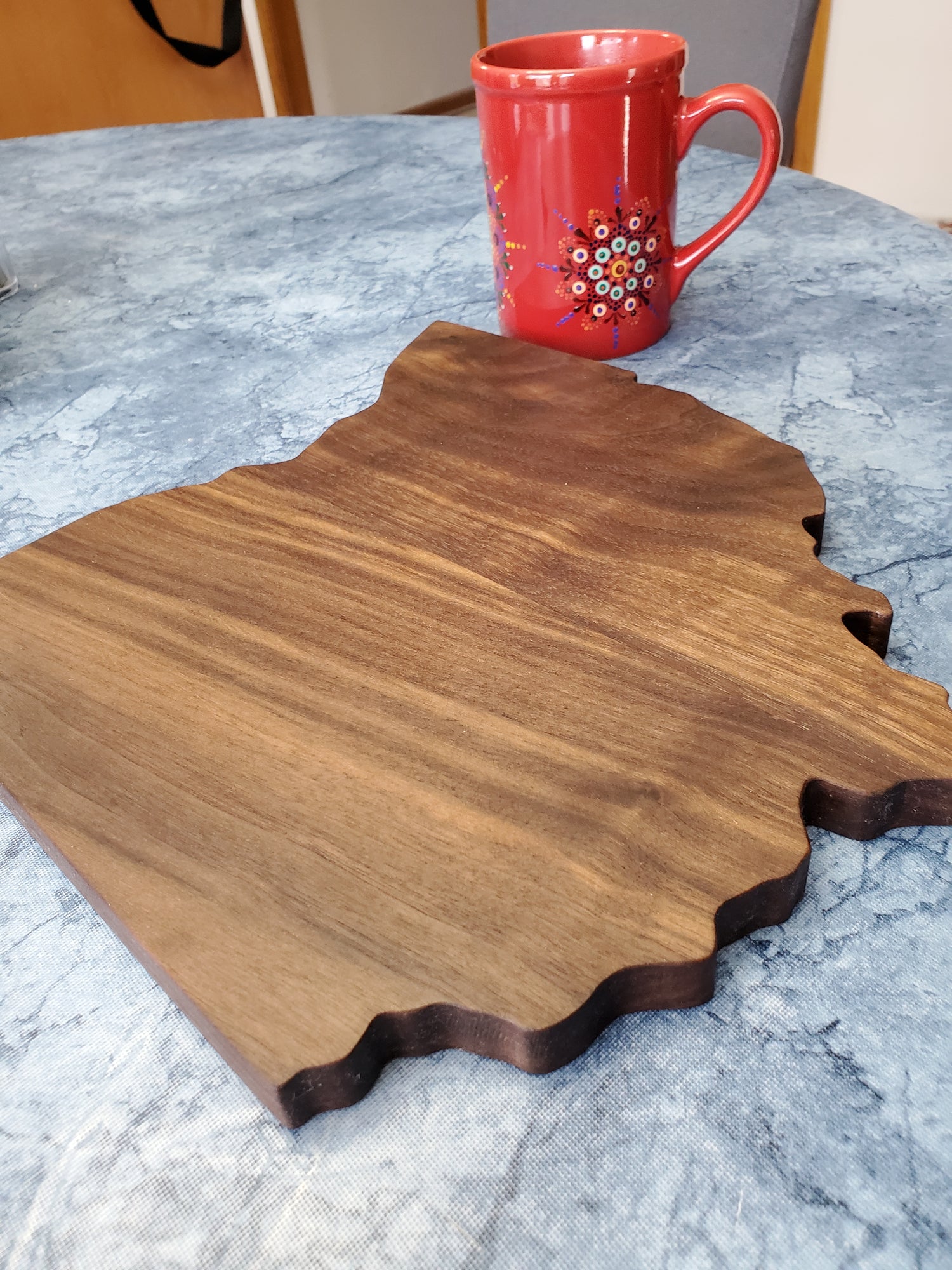 ORDER NOW! State of Ohio Charcuterie and Cutting Boards and trays are available in a variety of sizes, styles and woods. Medium and large boards can be used for cutting or serving, with the bowl option available for a more stylized charcuterie tray. The small sized tray with bowl is perfect for use as a trinket tray for keys in your entryway or for jewelry on your night table.
