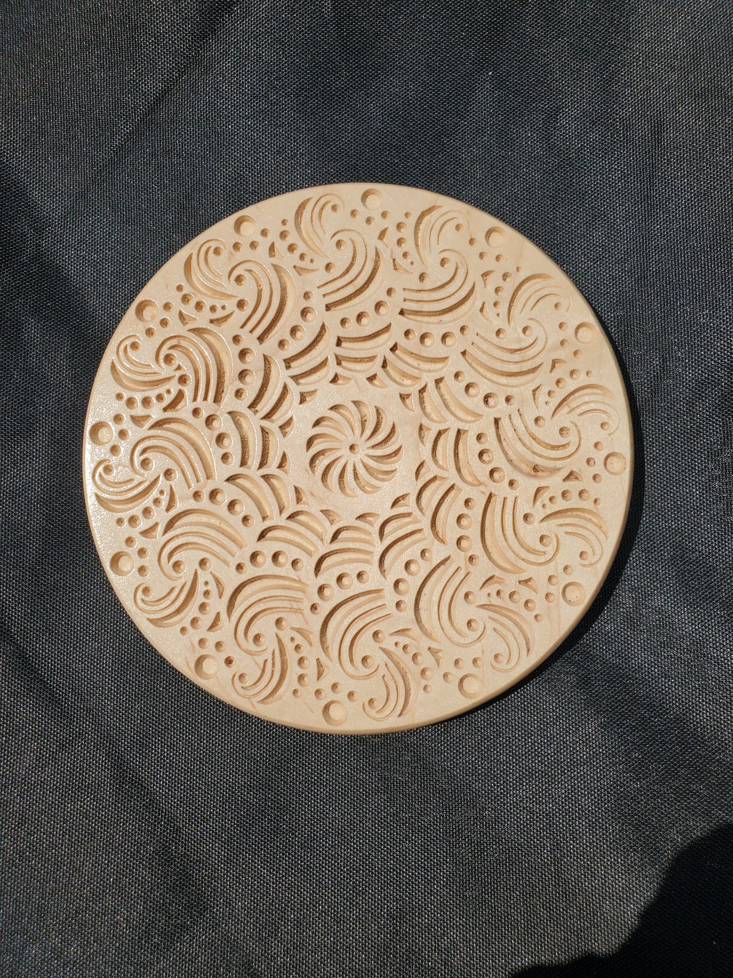 Crafted from solid maple and finished with a polymerizing tung oil, this trivet isn't just a practical accessory for your kitchen; it's a statement piece that combines functionality with fun, artistic designs.