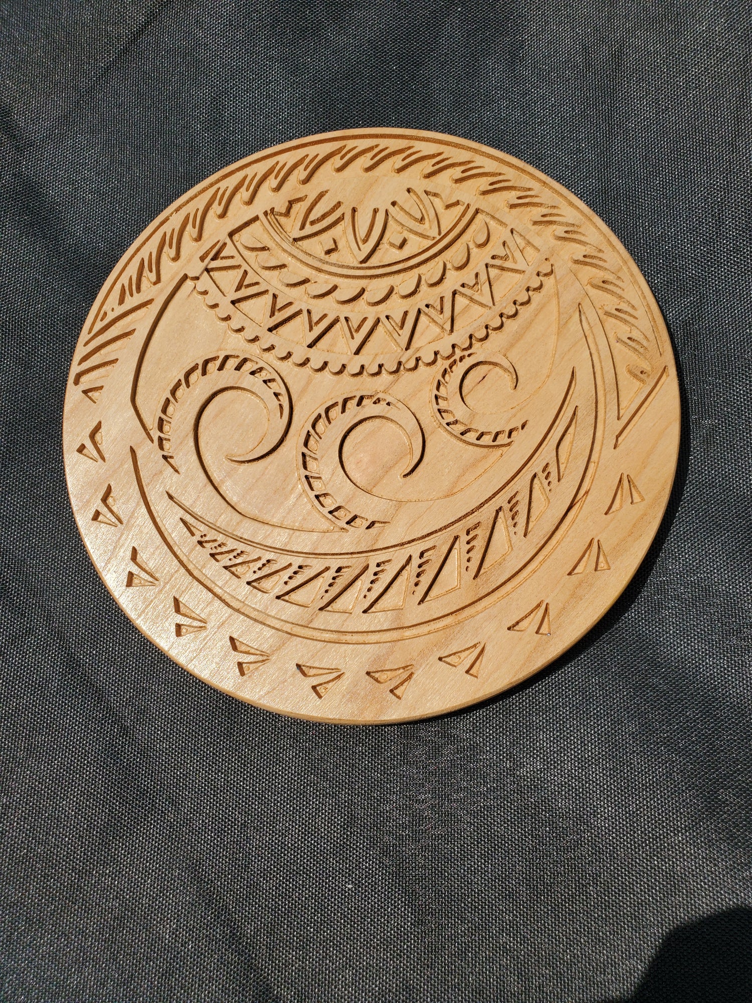 This trivet has our Andean Geowave design in a warm cherry wood. The pattern has elements of the sun, sky, earth and water.