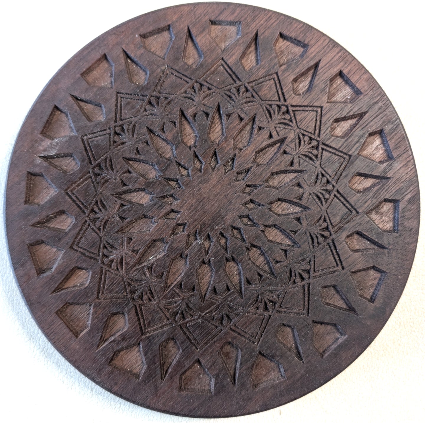 Trivet, small - Geometric Starburst pattern in walnut