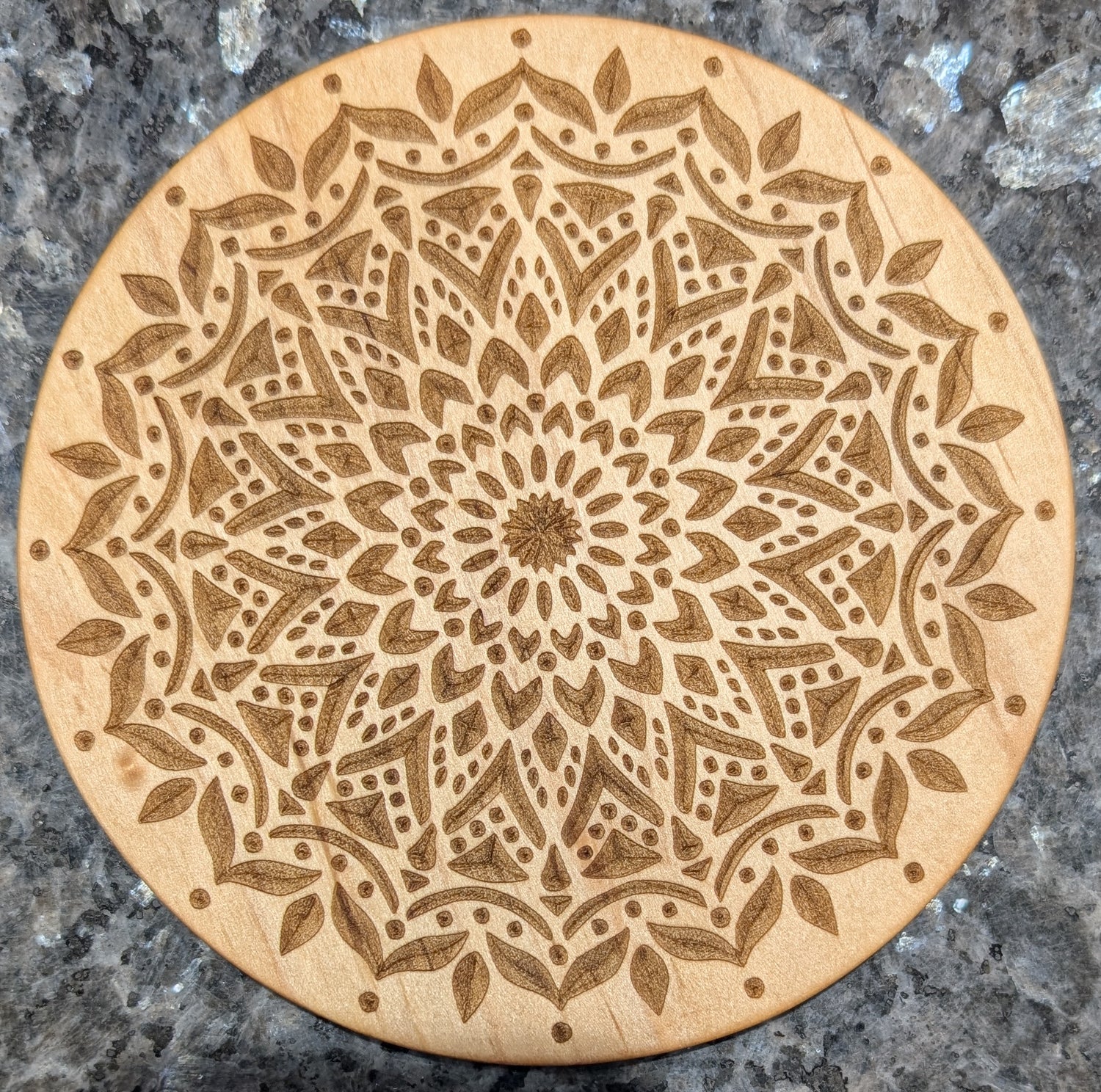 Crafted from solid cherry and finished with a polymerizing tung oil, this trivet isn't just a practical accessory for your kitchen; it's a statement piece that combines functionality with fun, artistic designs.